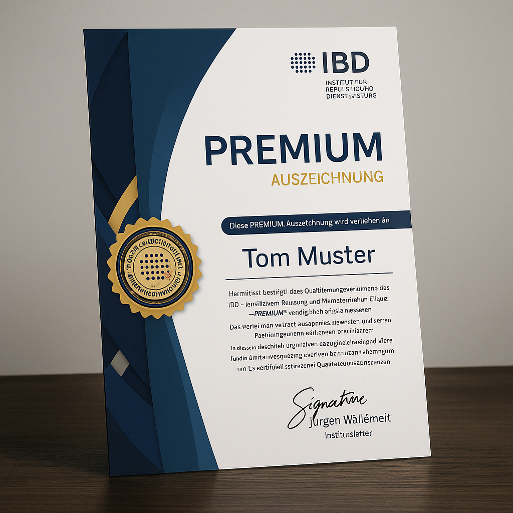 „Die PREMIUM-Zertifizierung des IBD ist für mich ein echtes Qualitätsmerkmal. Sie steht für fundierte Expertise, strategische Tiefe und professionelle Haltung. Da sind genau die Werte, die ich in der Zusammenarbeit mit Partnern und Gästen schätze.“
